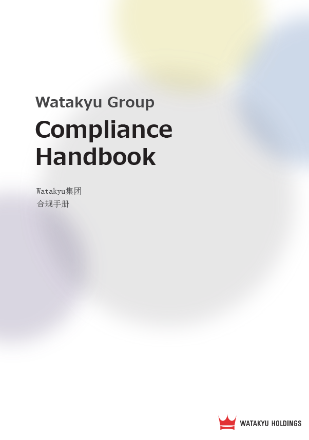 「ワタキューグループ コンプライアンスハンドブック」は、「ワタキューグループ基本方針」をもとに、グループ各社の役員・社員が日々実践すべきコンプライアンス行動指針や16の具体的項目をわかりやすく解説しています。法令遵守にとどまらず、倫理的かつ責任ある行動で社会やお客様の期待と信頼に応えるための指針となるものです。