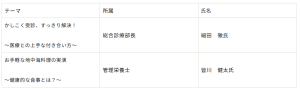 本取り組みは、より多くの方々に心臓の健康への関心を持っていただくことを目的とし、持続可能な開発目標(SDGs)達成への貢献と、地域住民の「健康寿命」の延伸を目指しています。今回は「自分で健康を守るコツ、教えます」をテーマに、医療との上手な付き合い方や、健康的な地中海のレシピを紹介しました。