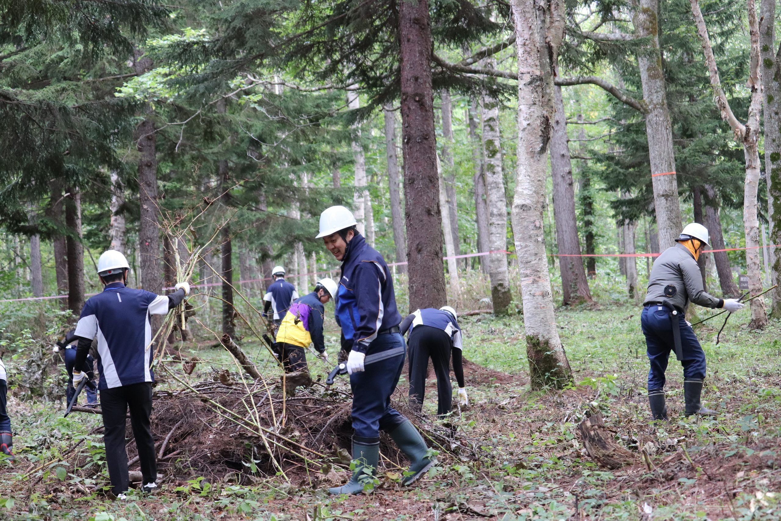 2025年9月10日、おたる自然の村にて、第9回北海道支店「ワタキューの森」森林整備活動が行われました。
