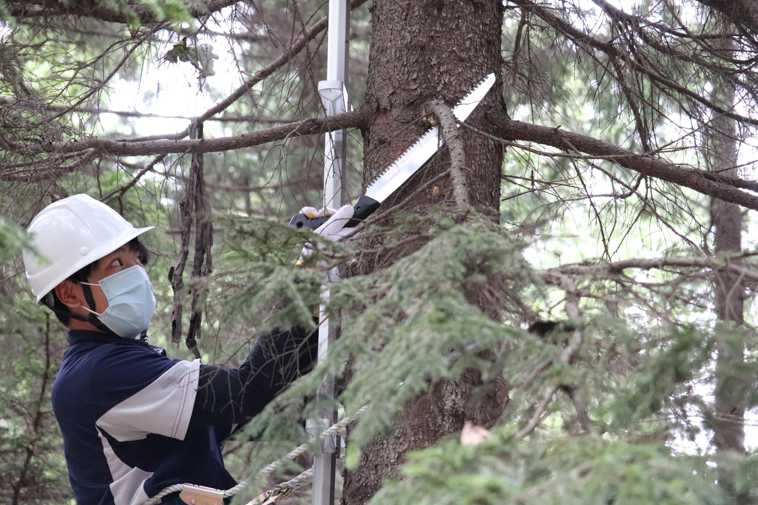 道内の事業所(小樽、函館、旭川、帯広)から有志が集まり、枝打ち班、下草刈り班に分かれ汗を流しました。